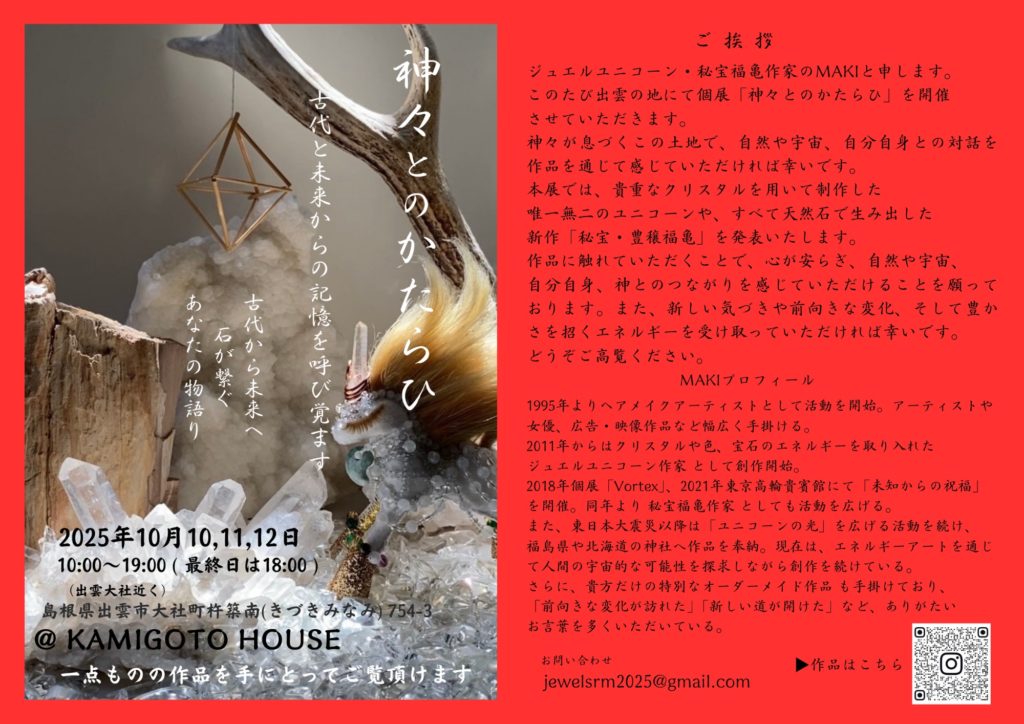 10月9日には、 出雲大社 への「ジュエルユニコーン」奉納もお繋ぎし、神々と人とのご縁を深める場としても特別な時間となりました。