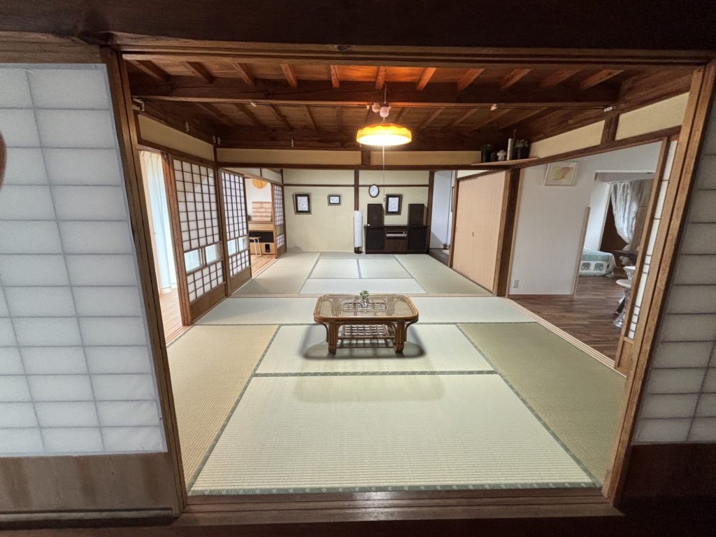 。呼吸する自然素材である漆喰壁や、温かみのある天然木を使用し、古民家ならではの畳の良さを活かした空間づくりを実現。